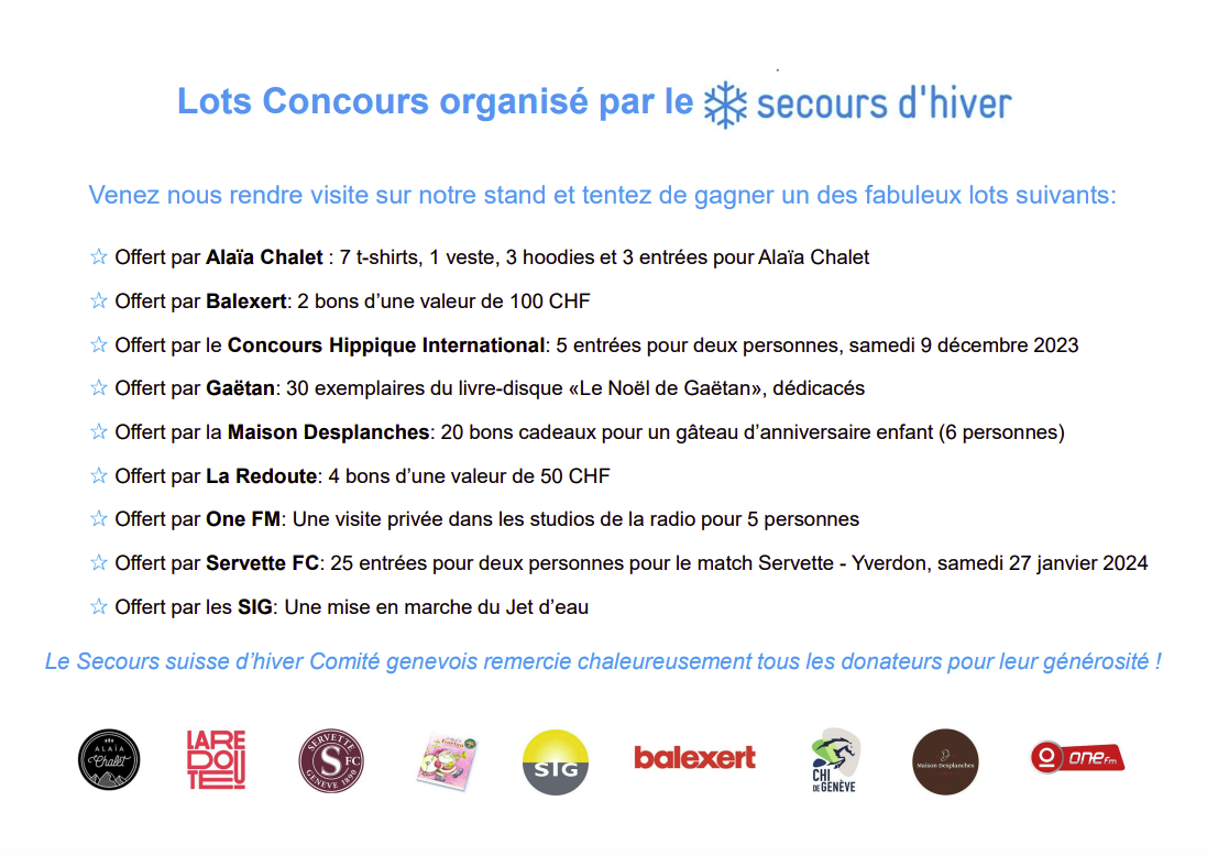 Le Secours suisse d’hiver Comité genevois remercie chaleureusement tous les donateurs pour leur générosité !