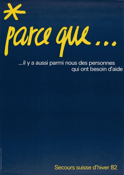 La conception d'affiches de qualité a une longue tradition en Suisse et imprègne notre vie quotidienne. Depuis sa création en 1936, le Secours d'hiver attire l'attention sur son travail avec ses campagnes d'affichage et offre aux jeunes graphistes une plate-forme pour montrer leurs compétences à un large public.