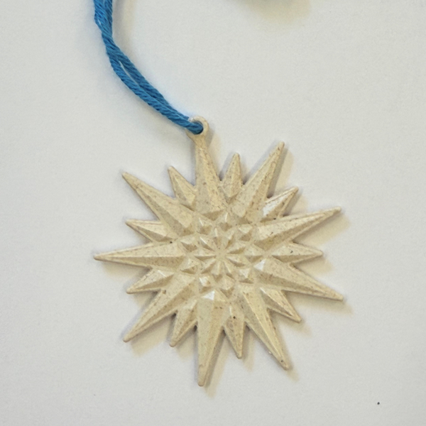 L'étoile est soit en magnet soit accrochée sur un petit cordon en laine. L'étoile est en sulapac, un matériau biodégradable aux multiples usages.